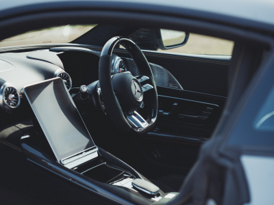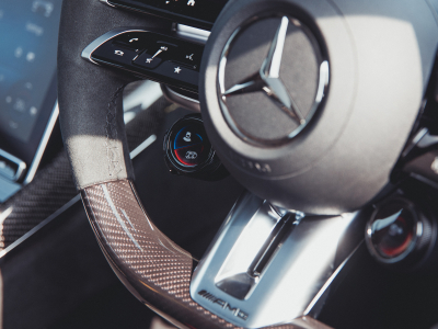 Kerusi AMG Performance yang direka secara ergonomik memberikan sokongan lateral terbaik untuk pemanduan agresif, sementara stereng rata di bawah dengan kemasan gentian karbon dan microfibre MICROCUT menawarkan cengkaman mantap dan estetik sporty.