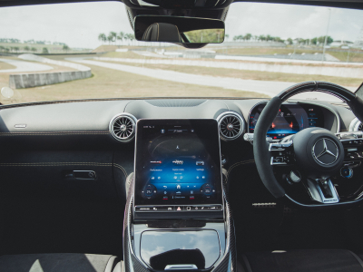 Model ini turut dilengkapi enam mod pemanduan menerusi AMG DYNAMIC SELECT—“Slippery”, “Comfort”, “Sport”, “Sport+”, “Individual”, dan “RACE”—yang masing-masing menyesuaikan tetapan enjin, transmisi, suspensi, dan stereng mengikut kehendak pemanduan.